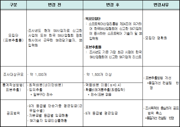 1. 통계의 명칭 : 소프트웨어기술자임금실태조사